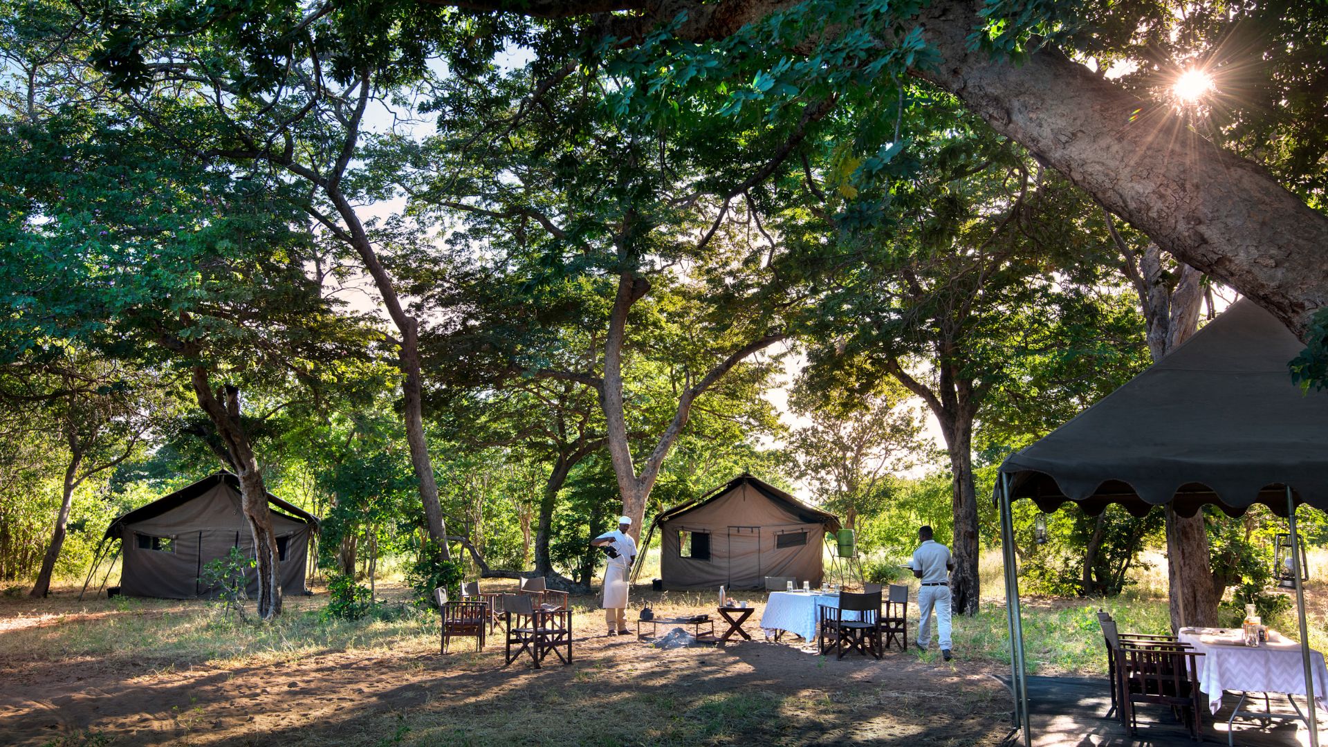Safari Tent for two guestsFive mobile tents set along the river