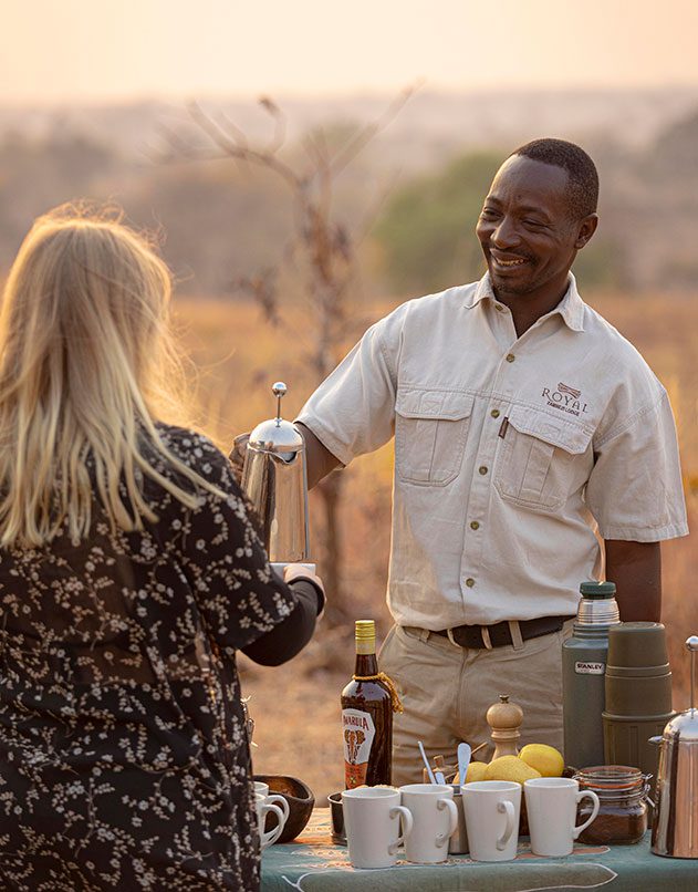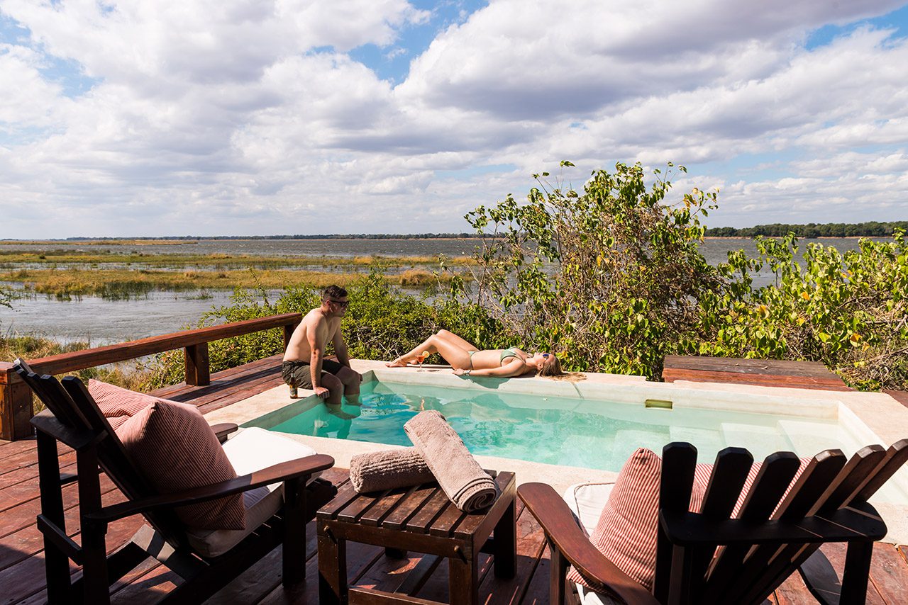 Riverside suites with private decks and plunge pools. Award-winning Royal Bush Spa. All-inclusive cuisine. Dedicated safari guides. Sunset cruises on the Zambezi. Fishing for the legendary tigerfish. Child-friendly activities. Solar-powered and eco-conscious.