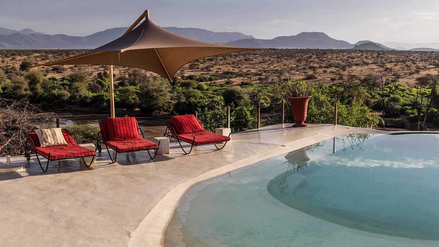 Sweeping views over the Ewaso Nyiro River. Private plunge pools in every suite. Renowned spa with Moroccan hammam. Family-friendly with kids’ bush school. Award-winning cuisine. On-site cultural experiences with Samburu warriors.