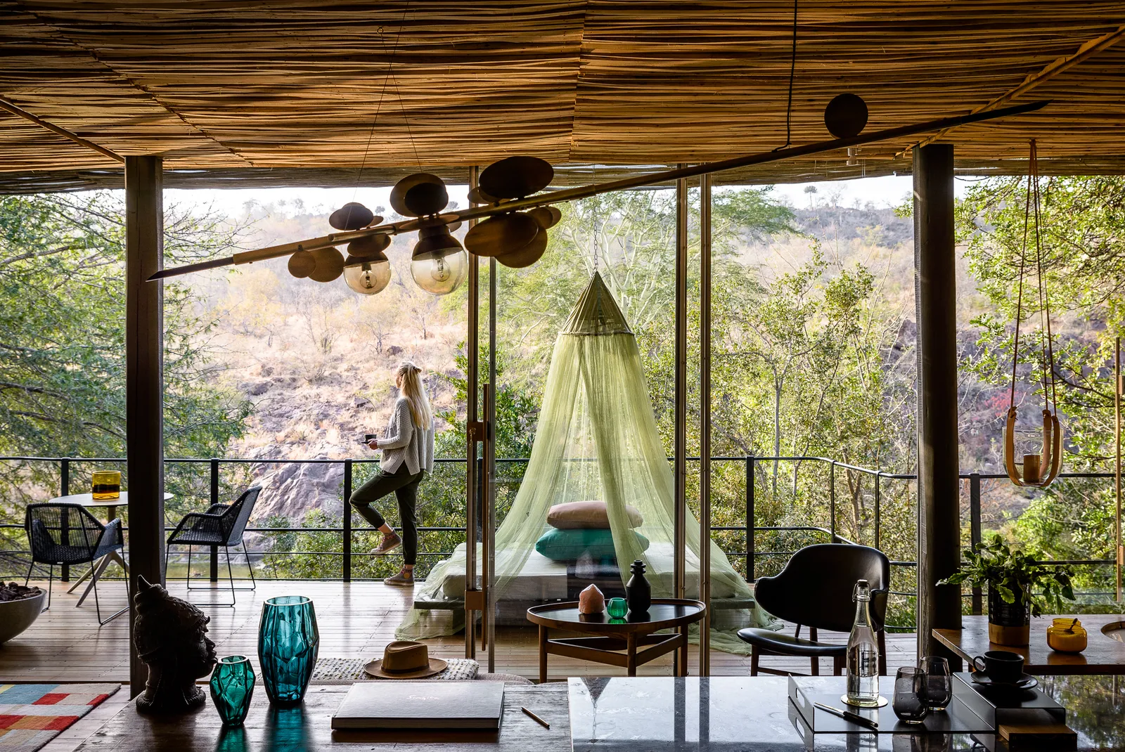 Striking glass, wood, and steel architecture brings the wild inside, with art and style throughout.
