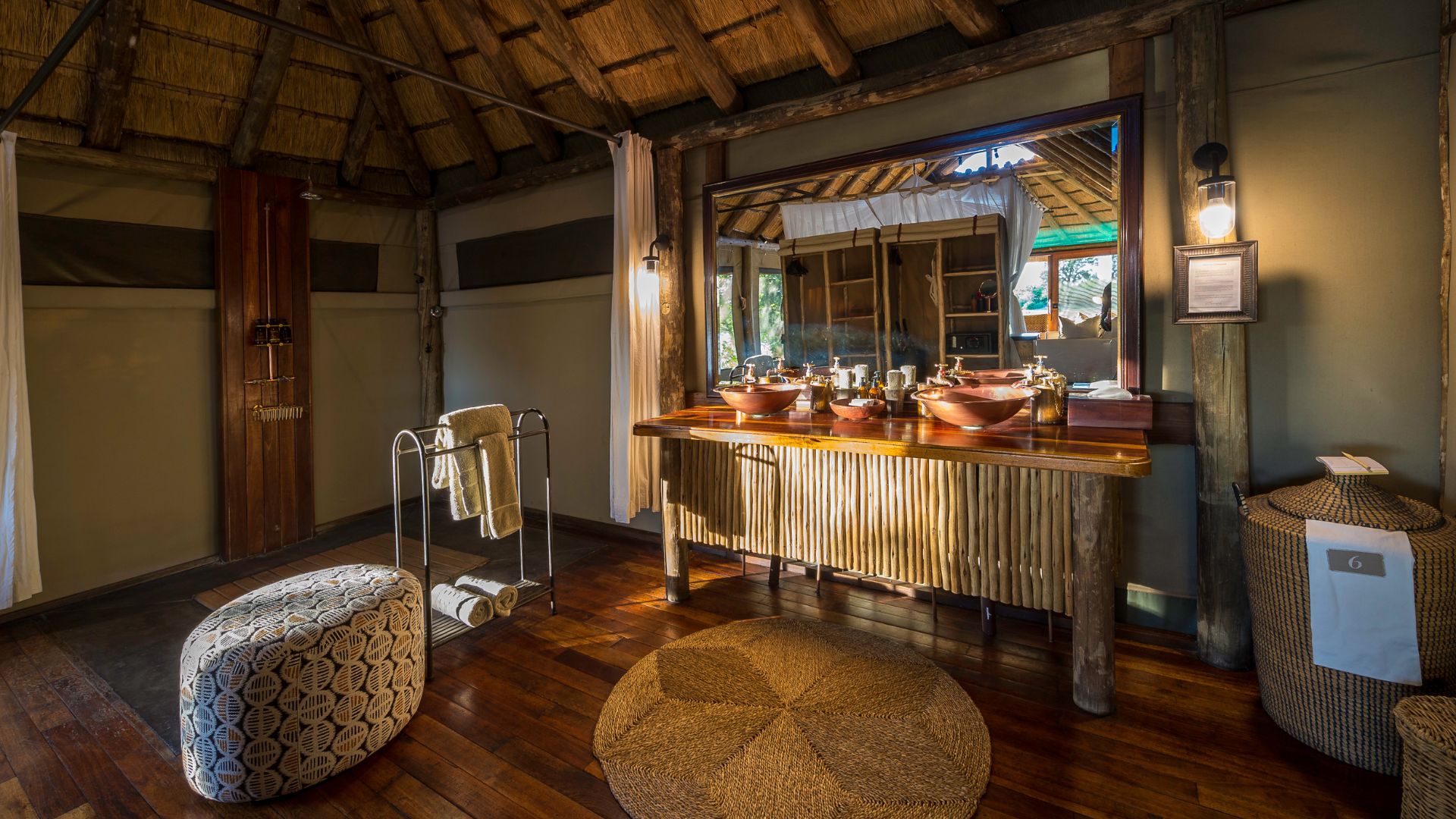 Classic en-suite safari tent with canvas and thatch, private deck overlooking the Savuti Channel, and stylish, comfortable interiors for pure immersion in Botswana’s wild.